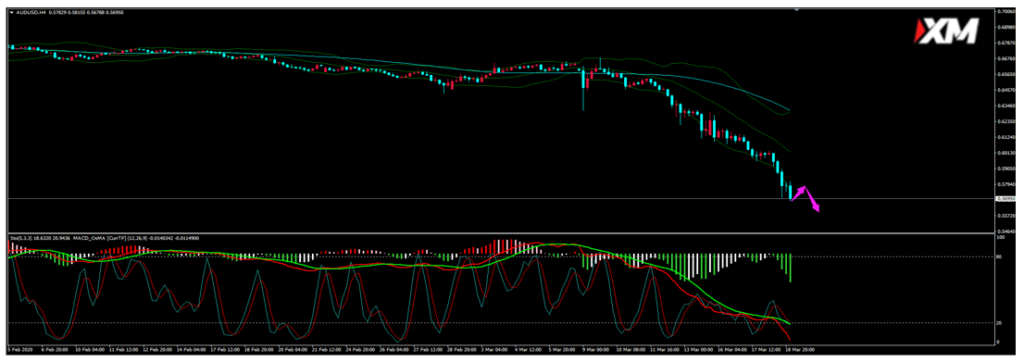 1H昨日下破0.5970一线空头增强,今日上方关注0.5770-80一线阻力,短线震荡偏空,目标关注日线前支撑,下破方可延续。