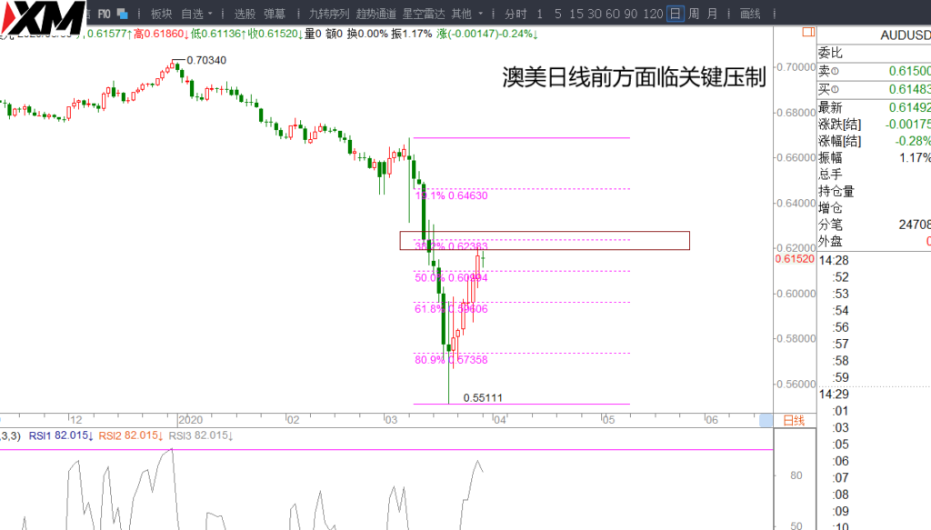 澳美日线0.6020不破,日内继续偏多运行,关注0.6076或者日内先跌关注0.6055附近多机会,止损0.6015,目标0.6115-0.6130/0.6140.若跌破则放弃此单,关注短级别的通道0.5990/0.5970支撑。