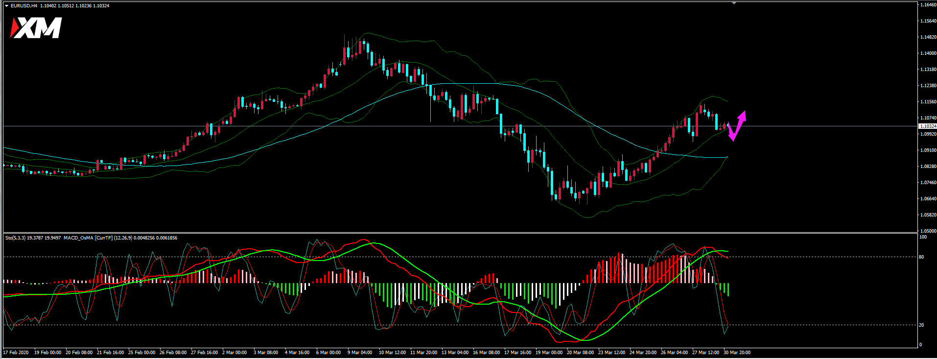 4H昨日失守1.1090一线陷入震荡格局,目前短期均线偏下,MACD零轴上方死叉运行,短线面临技术性调整。