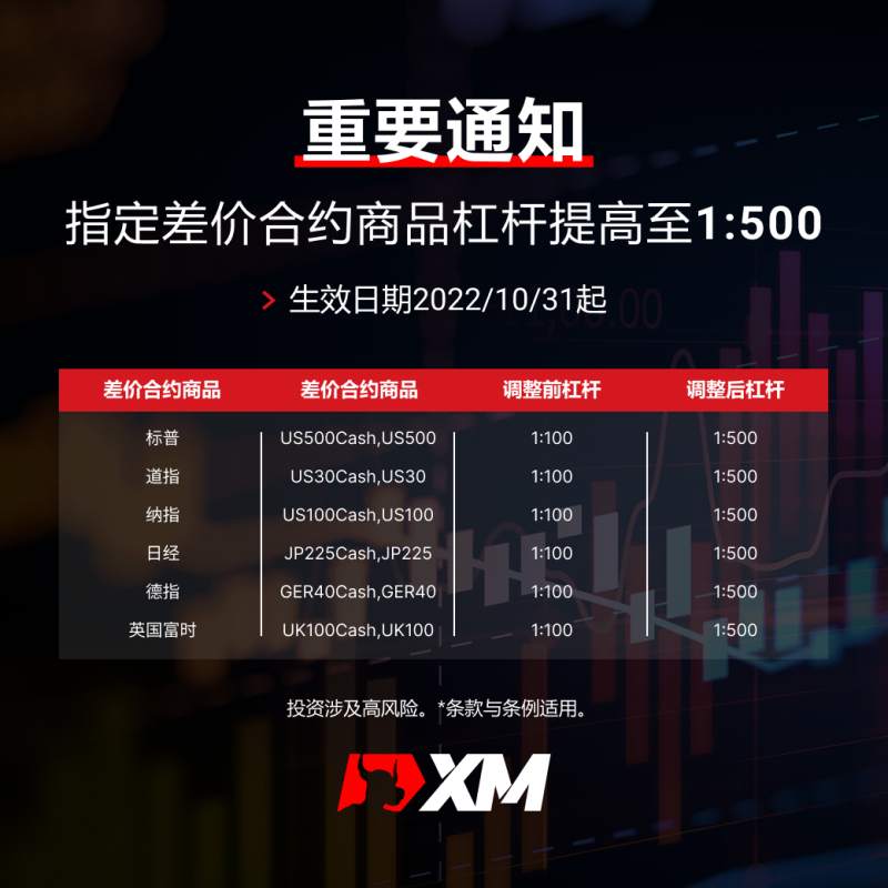 为了持续改善交易条件,我们在此宣布,从10月31号起,热门现货和期货股指的最高杠杆即将调整为1:500。