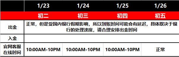 兔年大吉,新春快乐!XM在这里给您拜个早年!受中国2023年春节的影响,XM出入金和客服时间安排如下,请您合理安排您的出入金和仓位。