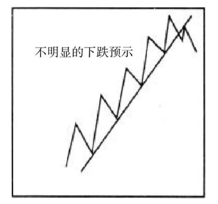 上升趋势线的斜率越大,其向下突破预示进入下跌趋势的意义就越小,如果原本上升趋势线非常陡峭,一次向下突破趋势线可能仅仅意味着价格现在会以较小的斜率增长。