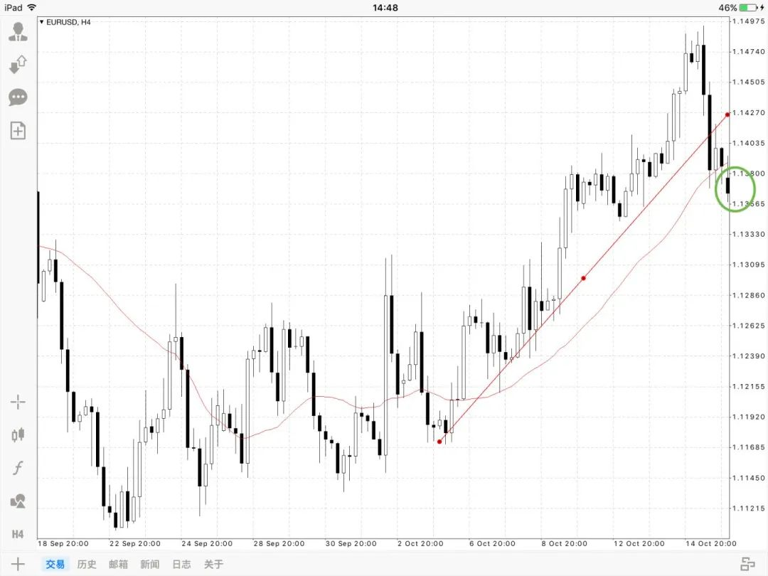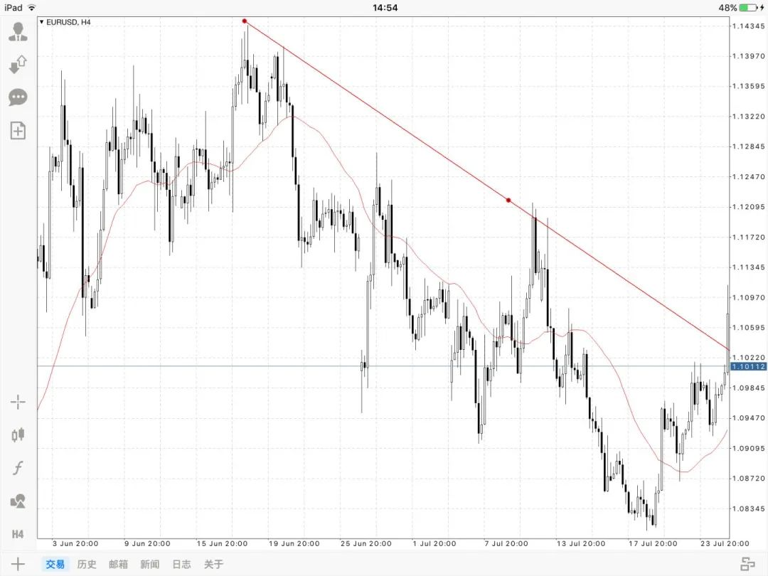 倾斜趋势线,和均线一样,是一个优秀的趋势指标,可以帮助我们判断目前市场价格的主要趋势,但不是一个提供很好交易点位的指标。