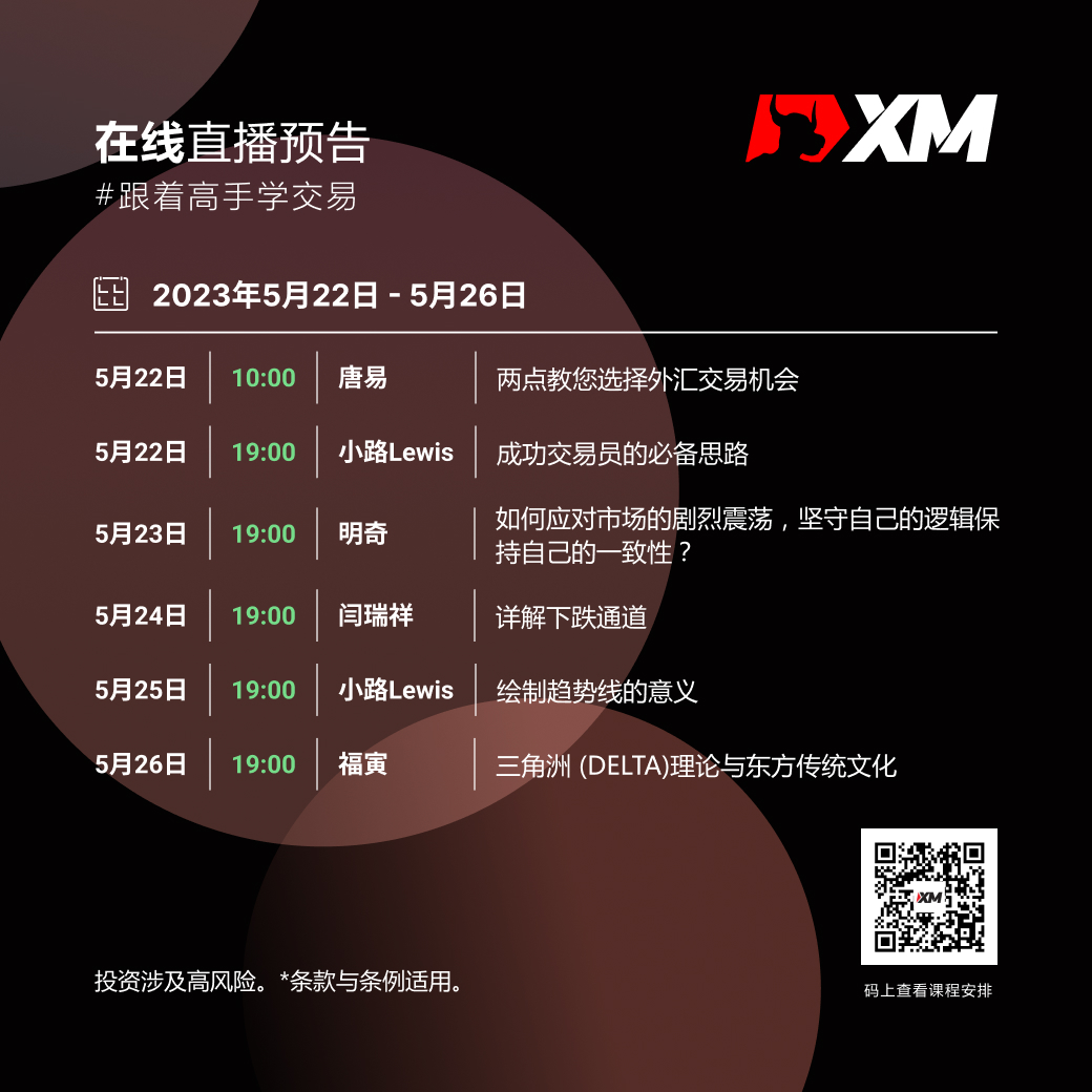 即刻报名XM线上直播课程!星期一至星期五,每周课程高达6节。汇集业界顶级外汇讲师,内容丰富,时间灵活,适合所有初学者和经验丰富的交易者。