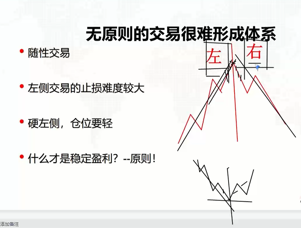 答:左侧交易和右侧交易就是高点出现之前交易是在左边,高点出现之后交易的就是右侧。在绝对低点出现前抄底这个叫左侧,在绝对低点后出现叫右侧,尽量不要去抄底。