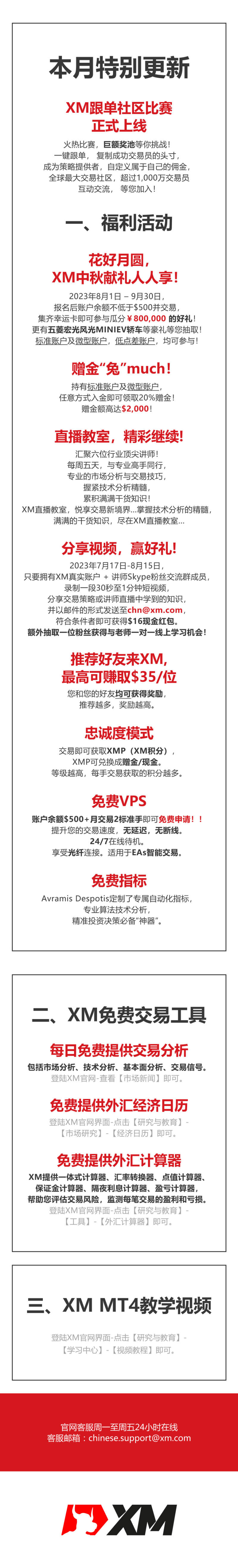 发送邮件至chinese.support@xm.com,邮件内容输入“XM活动手册”,即可领取。