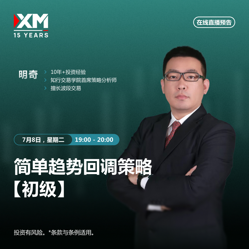 今晚,北京时间 19:00,明奇老师将讲解简单趋势回调策略【初级】。