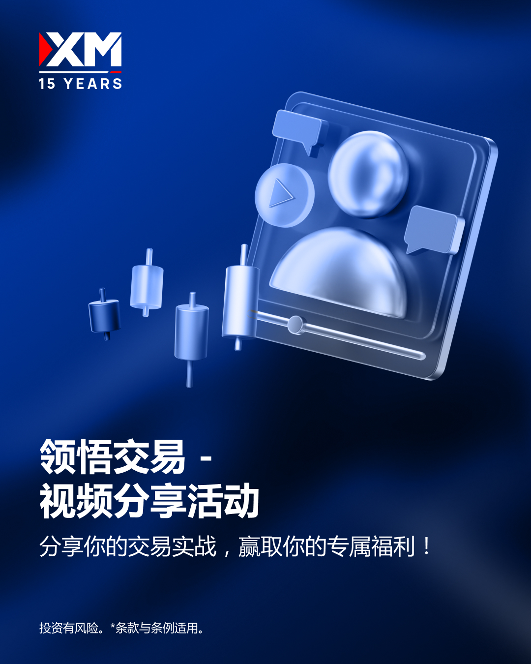 现在开始至 2025年8月31日,发送30秒左右的个人实盘交易讲解视频至chn@xm.com,便可参与“XM视频分享活动”。