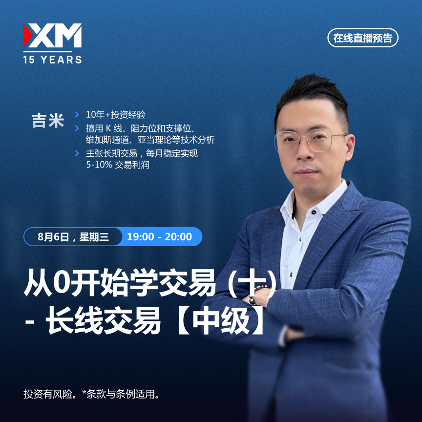 今晚,北京时间 19:00, 吉米老师将说明从0开始学交易(十)- 长线交易【中级】。课程内容包括: