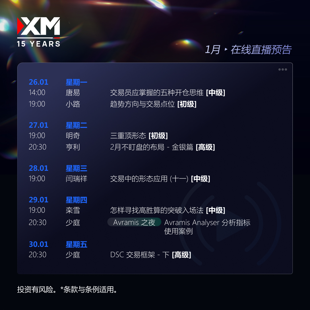 🎯 锁定XM直播课堂,从趋势判断到实战应用,全方位强化你的交易能力,让交易不再凭感觉,而是有章可循!