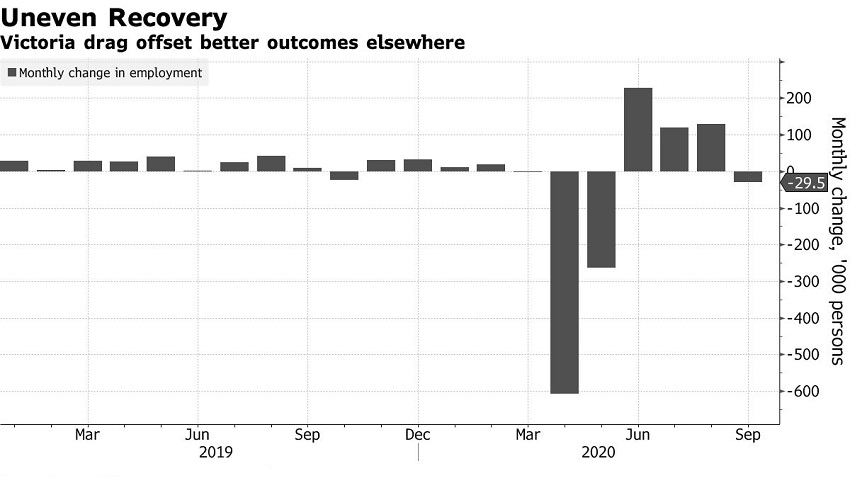 澳大利亚目前的失业率为6.9%,财政部预计今年晚些时候将达到8%的峰值。澳洲联储副主席德贝尔(Guy Debelle)上周暗示,澳洲经济可能在第三季脱离衰退,因澳洲其他地区经济出现增长,克服了维多利亚州封锁带来的拖累。