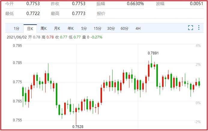 澳大利亚的经济复苏强于早先的预期,预计将持续下去。澳洲央行的核心设想是,今年澳洲GDP将增长4.75%,2022年将增长3.5%。这种前景得到财政措施以及非常宽松的金融条件支持。不确定性的一个重要的持续来源是病毒爆发的可能性,尽管随着更多人群的疫苗接种,这种情况应会减少。降低失业率的进展快于预期,4月份失业率降至5.5%。职位空缺处于高位,预计到今年年底失业率将进一步下降至 5% 左右。汇价现报0.7733,跌幅0.25%。