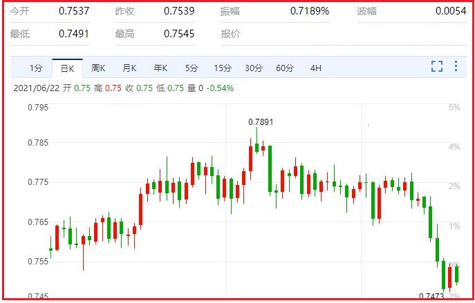 不过,澳洲央行可能会在下一次7月6日的利率决议上制定退出策略,因为官员们在9月份完成第二次政府债券购买计划的1000亿澳元的债券购买后,或考虑未来的债券购买规模,若届时官员们暗示货币政策即将改变,显露出更大的意愿撤出其紧急工具,那么这可能提振澳元/美元。汇价现报0.7504,跌幅0.47%。