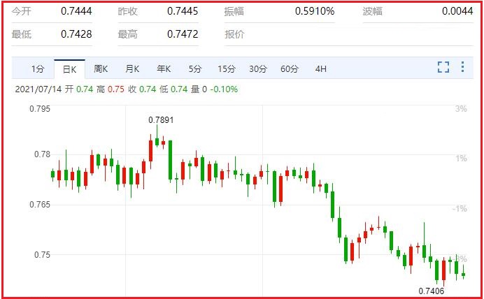澳大利亚的数据显示,澳大利亚国民银行的商业信心指数从5月的20下降到6月的11,而市场预期为23。这是由于新南威尔士州和维多利亚州的疫情封锁遏制了销售并削弱了信心。此外,商业状况指数从36降至24,低于分析师预期的33。积极的一面是,HIA New Hom Sales在6月份环比增长了14.8%,但这一数据并没有帮助澳元聚集力量。 由于澳大利亚国内新冠肺炎病例增加了45%,澳元/美元走低。新型冠状病毒的Delta变种正在悉尼肆虐,导致该国报告的病例总数达到一年来的最高水平。这场爆发可能导致期三周的封锁延长至8月,甚至更长时间,该国经济复苏正面临越来越大的威胁。汇价现报0.7438,跌幅0.10%。