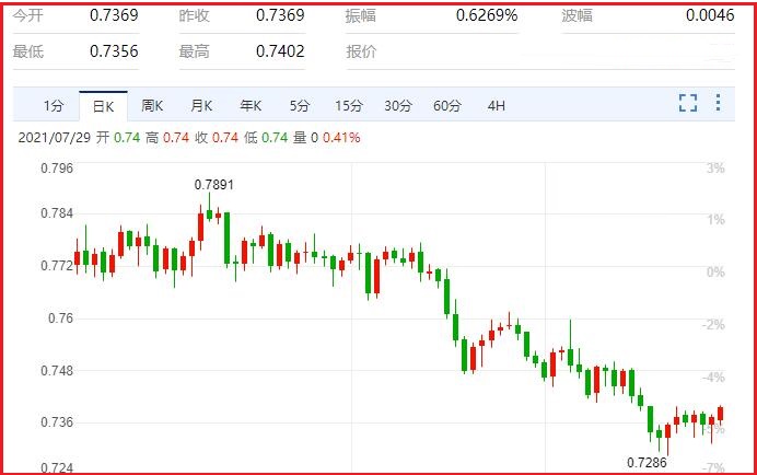 同时,新的限制措施可能会削弱澳大利亚本季度的消费支出和就业,给一直非常迅速的经济复苏带来冲击。经济学家已经预测,澳大利亚的GDP将在21世纪第三季度经历深度收缩,一旦政府取消限制,将需要更多的财政和货币刺激。汇价现报0.7409,涨幅0.47%。