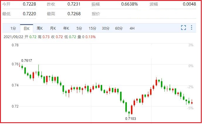 美联储缩表强预期、中国经济增速不及预期,恒大事件,铁矿石铜矿价格下滑,包括澳洲构建核潜艇这种风险事件让澳洲卷入地缘冲突之中,这些都影响投资者对澳元的下注投资。在2020年下半年和2021年上半年的大部分时间里支撑澳元的因素已经消散,现在有可能成为明显的负面因素。这让澳元处在风险波动之中,让投资多头,减少对澳元的下注。汇价现报0.7240,涨幅0.12%。