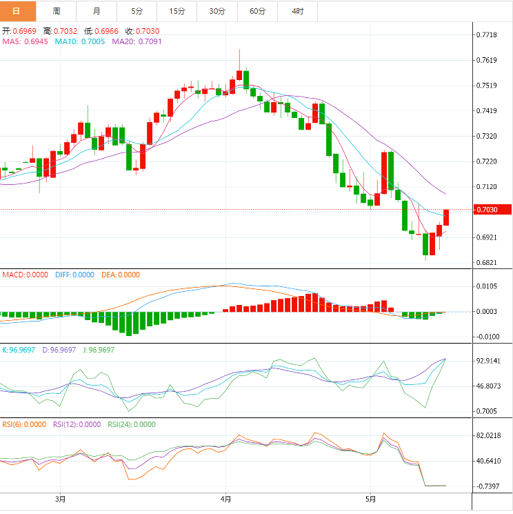 这可能会让澳元兑美元升至接近通道顶部的50%斐波那契水平,以及0.7050这个较小的心理关口。回调的线将在0.7100手柄附近的61.8%水平。