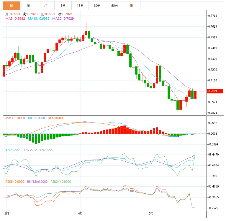 或者,如果澳元兑美元跌破上述0.6950-0.6962区间的需求区域,澳元兑美元可能重新获得控制权。这将把澳元兑美元拖向5月16日的低点0.6872,然后是5月12日的低点0.6828。