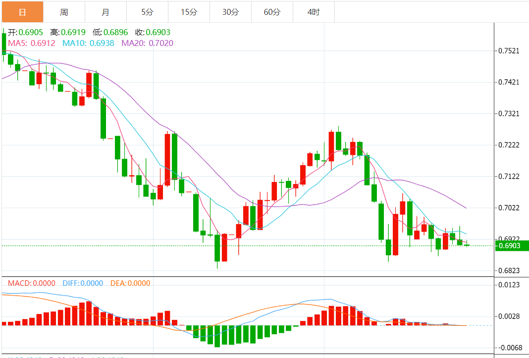 技术上,汇价下跌可能与RSI下降(未超卖)以及MACD信号看跌有关。汇价持续交投于100和200SMA均线以及一周下降阻力线下方,也支持该货币对的看跌倾向。不过自6月14日以来的上行支持线在0.6880附近限制澳元兑美元立即下行。