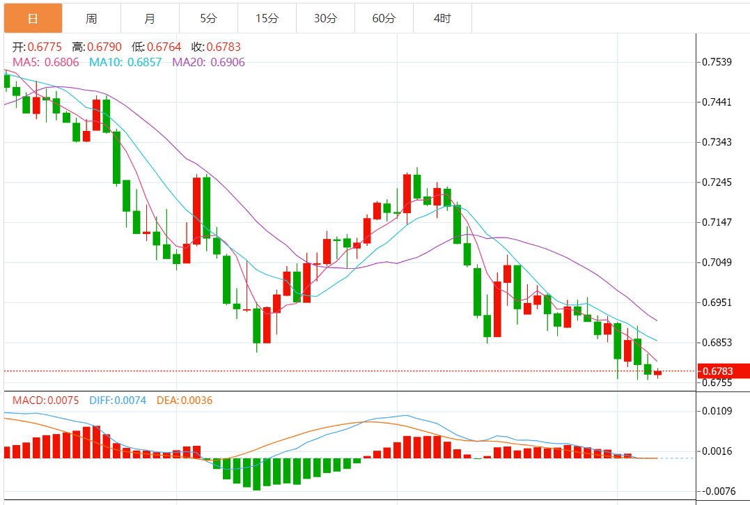 技术上,澳元/美元自1 月以来的下行趋势线0.6750 附近反弹,最迟指向月线阻力 0.6845 附近。然而,在汇价维持遇阻5月以来的前期支撑发稿时最新处在0.6865之前,空头仍维持期待。