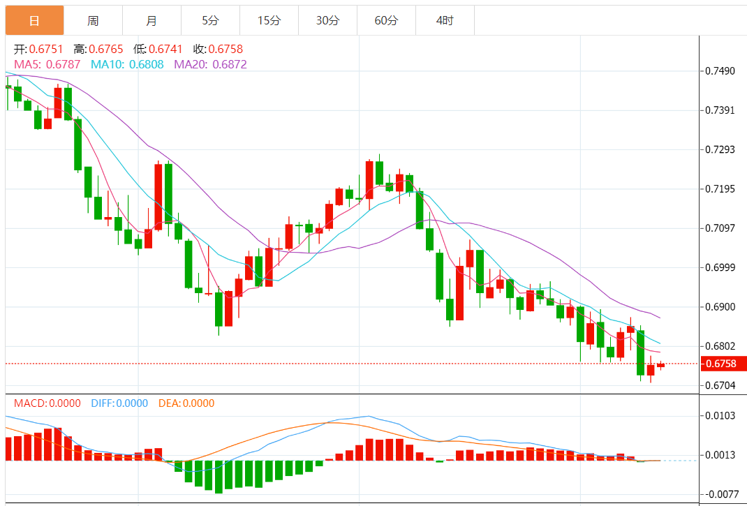 技术上,MACD 即将构筑死叉且相对强弱指标未处在超卖维持下行倾向,也让空头维持期待。也就是说,最新录得的数月低点0.6710 似乎构成支撑,然后是一周下降趋势所处水平0.6700 关口附近。