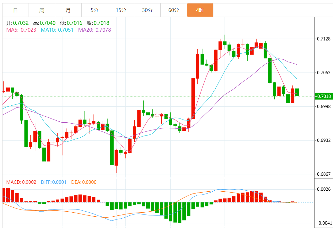 由于中国经济数据相对疲弱,美元指数反弹,澳元兑美元汇率下跌。国家统计局数据显示,全国零售额、工业生产和固定资产投资增速低于预期。