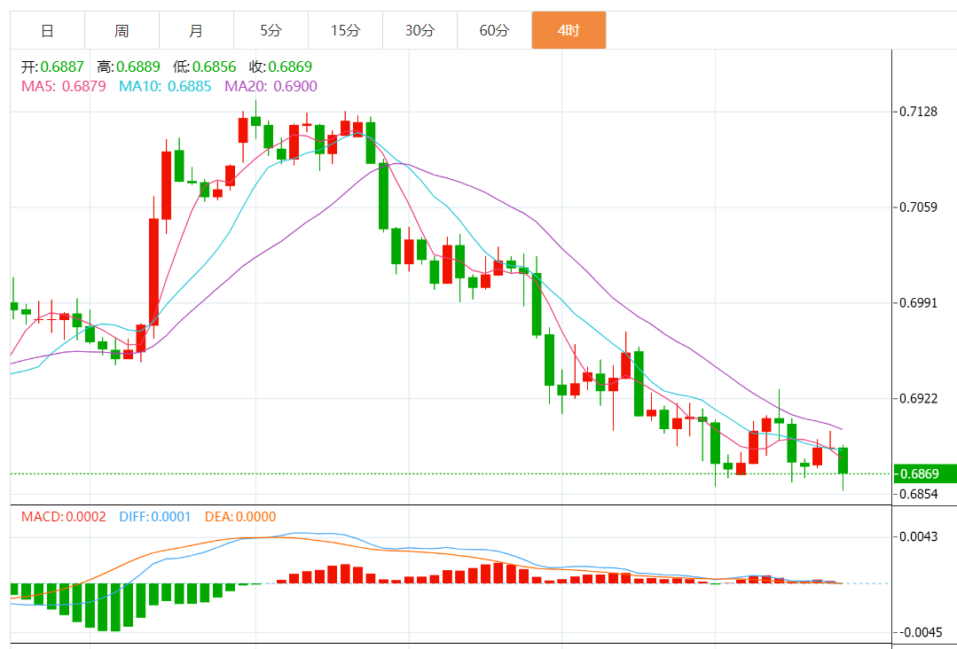 在 0.6900 设置买入止损,在 0.7000 设置止盈。