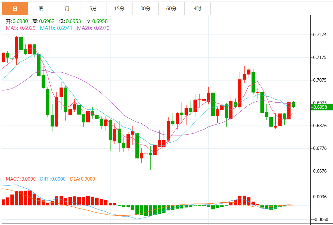 值得注意的是,50% 斐波位0.6910,然后是 0.6800 附近成为澳元/美元下行支撑。另一方面,汇价维持遇阻上述水平阻力区域0.6980-90 之前,反弹前景仍不明朗。0.7000关口也构成上行阻力。