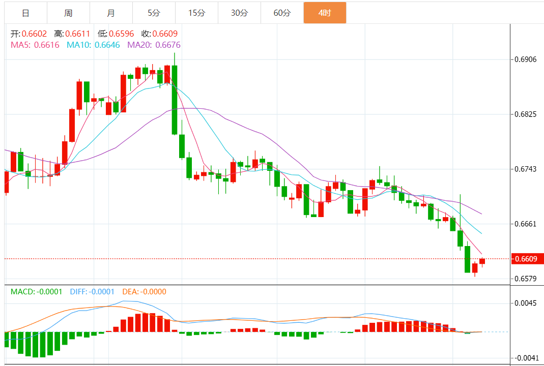 技术4小时图显示,鉴于看跌形态、风险厌恶情绪以及汇价持续交投于50SMA下方,澳元兑美元可能会刷新29个月低点。