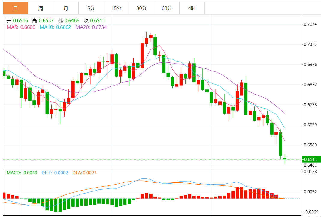 技术上,澳元兑美元成功触及我们等待的主要目标 0.6500,显示出更多的看跌倾向,推动该水平并在盘中和短期内继续下跌,为实现新的负面目标铺平道路0.6420。