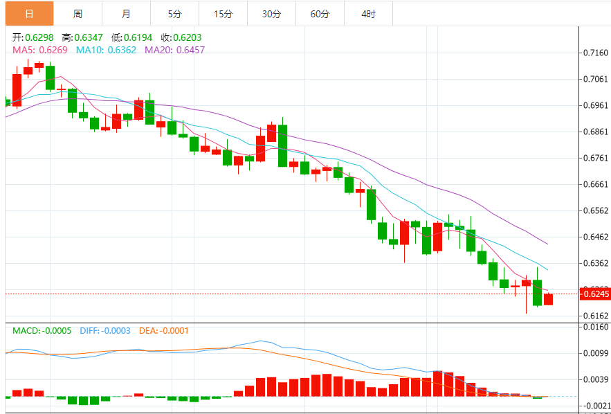 技术上,只有突破0.6380才表明澳元不太可能进一步下跌。 随后澳元上涨至0.6347后大跌至0.6195的低点。虽然澳元风险仍偏下行,但未来数日必须突破并维持在0.6170下方,否则其进一步下跌的机会将消失。