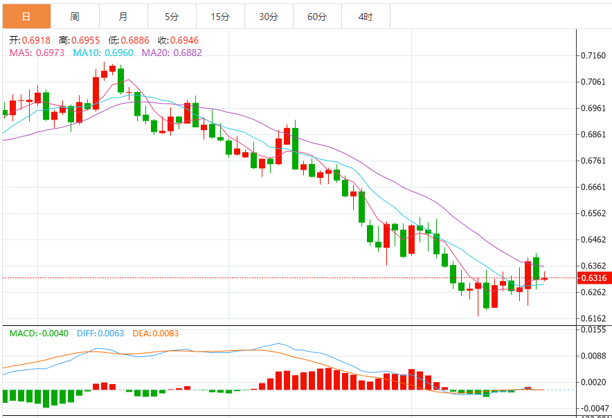 技术上,澳元多头的回应性买盘转入突破更长期的盘整阶段,现在,上行突破正在测试突破的边缘。20EMA均线位于0.6340,构成重要支撑位。