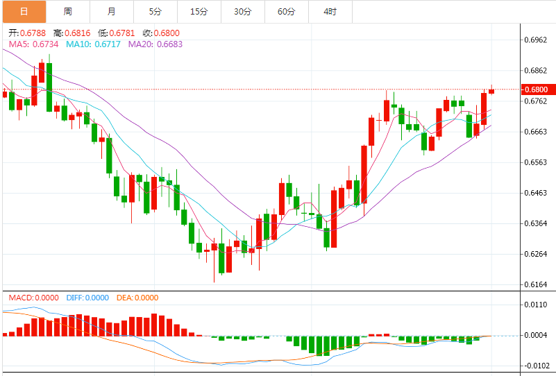 继财新中国制造业採购经理人指数公佈后,澳元/美元波动不大。然而,当美联储主席鲍威尔表示美联储可能放缓加息步伐后,美元全线下跌,澳元/美元上涨至11周高点0.6816。这使美元指数有望创下2010年以来最差的月度表现。