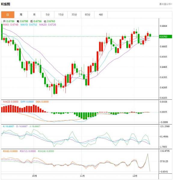 澳元本周开始处于负值区域。在欧洲交易中,澳元/美元交易于 0.6766,下跌 0.44%。