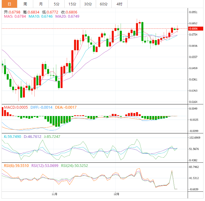 澳元基本面:财新公布好于预期的制造业採购经理人指数,澳元/美元大幅走强。儘管中国政府採取了迅速恢复经济的措施,但新增新冠病毒病例激增,财新制造业採购经理人指数录得49.0,好于预期48.8。美元指数已经跌破103.20,即便开盘有所反弹。同时标普500指数期货已经收复亚市早盘出现的全部跌幅,表明市场风险偏好持稳回升。在美国方面,投资者将密切关注周四公布的联邦公开市场委员会(FOMC)会议纪要。美联储12月货币政策会议纪要将具体解释美联储加息50个基点的依据。