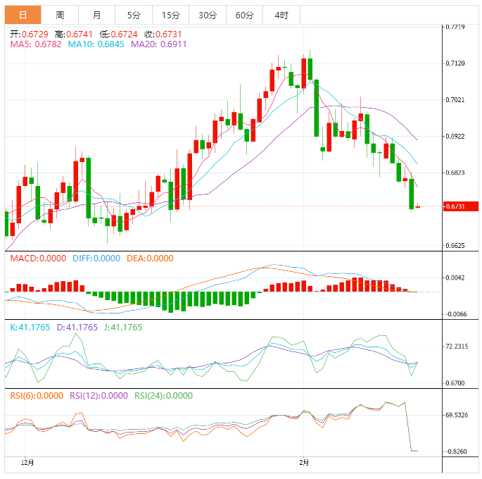 在此之后,从2月2日开始的向下倾斜的阻力线,最晚接近0.6850,成为澳元/美元空头的最后防线,突破这条阻力线可能会推动价格走向0.7000整数。