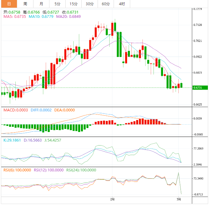 澳元基本面:澳元/美元跌至0.6730附近后,出现做多情绪。澳元/美元预计将转为盘整,继大幅波动后通常会带来波动收缩。此外,美元指数(DXY)上涨阻止澳元/美元区间波动。与此同时,澳大利亚消费者价格指数月率大幅下降预计将阻止澳元下行。 1月通胀自期值8.0%和前值8.4%大幅降至7.4%。通胀数据大幅下降让澳大利亚储备银行(RBA)的政策制定者鬆了一口气。此外,第四季度国内生产总值下降对于澳储行来说可谓锦上添花。