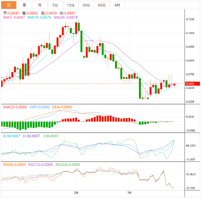 澳元基本面:澳元/美元三日内首日下跌,处在0.6670附近,有望周线收跌。在这期间,澳元/美元验证其风险晴雨指标的地位,以及澳大利亚国内经济数据低迷。当天早些时候,澳大利亚3月份标准普尔全球採购经理人指数初值降至荣枯线50.00以下,不及市场预期和前值。也就是说,制造业採购经理人指数下滑至48.7,预期为50.3,前值为50.7,而服务业採购经理人指数自前值50.7和市场预期49.7下滑至48.2。因此,综合採购经理人指数降至48.1,前值50.6。