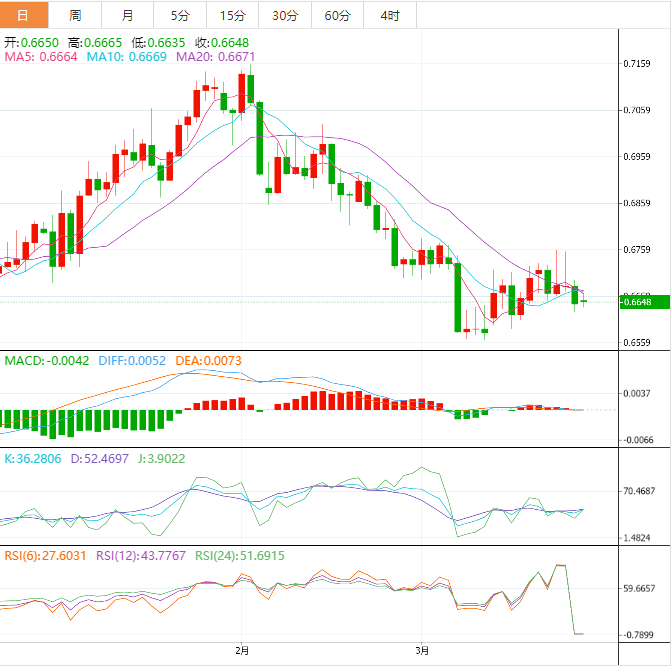 澳元基本面:澳元兑美元在经历了动荡的一周后,在周一的低迷交易时段,买家努力保持在0.6650附近。在此过程中,澳元兑美元收复了本周的失地,但缺乏反弹动能,无法延续上周五尾盘从一周低点的修正反弹。
