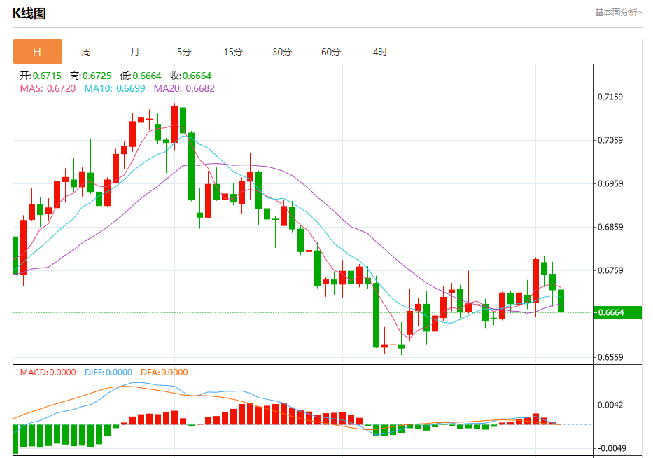 今天的预期交易区间在0.6650支撑和0.6770阻力之间