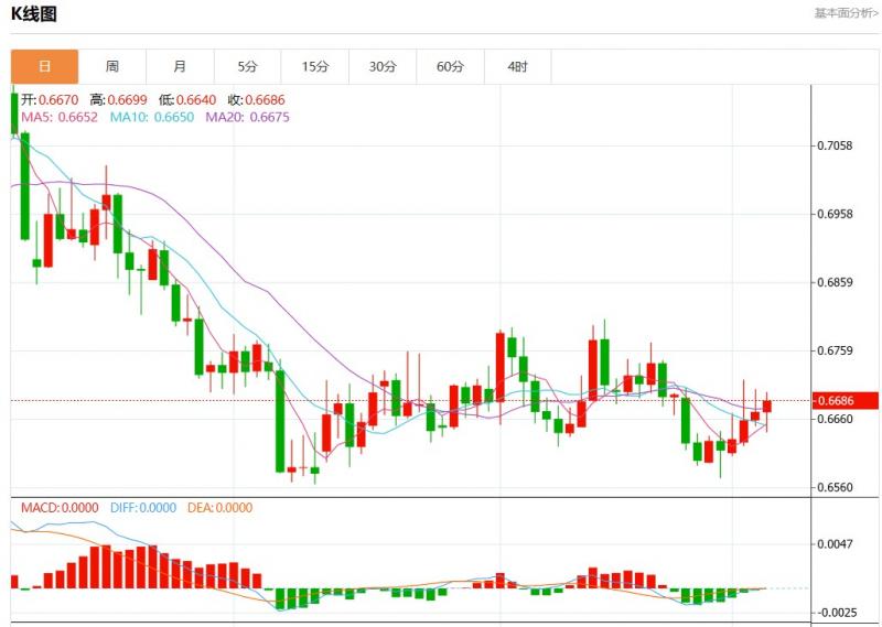 周四盘中,澳元美元报0.6684,涨幅0.25%。