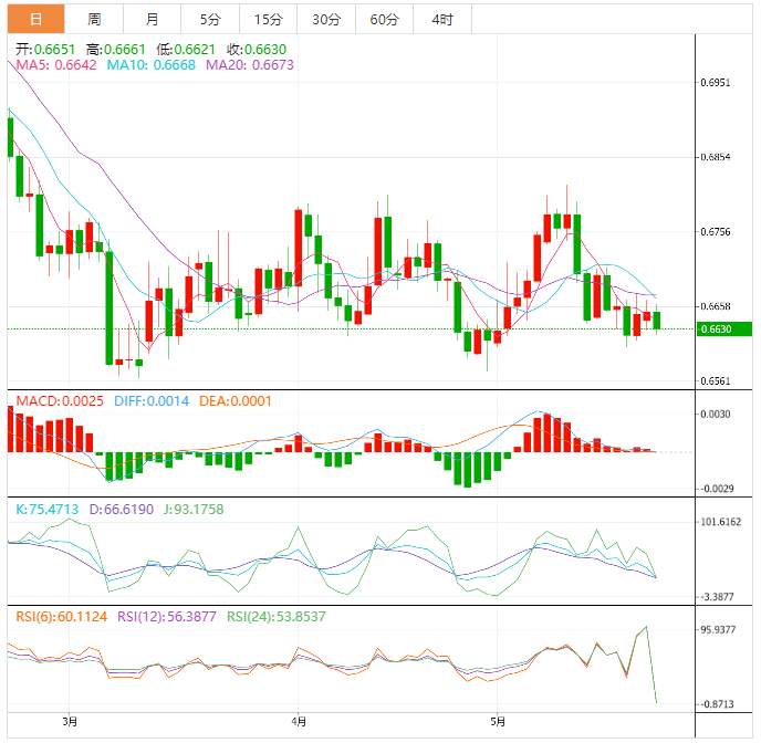 澳元基本面:澳元兑美元在周二早些时候表现不佳,价格努力逆转亚市午盘自盘中低点的反弹行情,目前小幅下跌至0.6650附近。尽管美国总统拜登和众议院议长凯文-麦卡锡在最近的谈判中未能提出避免债务上限到期的协议,但在美国将避免违约的希望之下,美元走强打压澳元。目前美元指数逐步走高至103.30附近,录得两日上涨。
