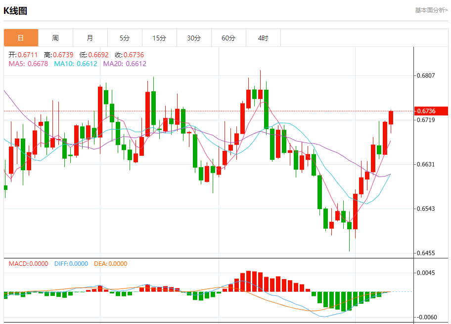 今天的预期交易区间在0.6660支撑和0.6770阻力之间