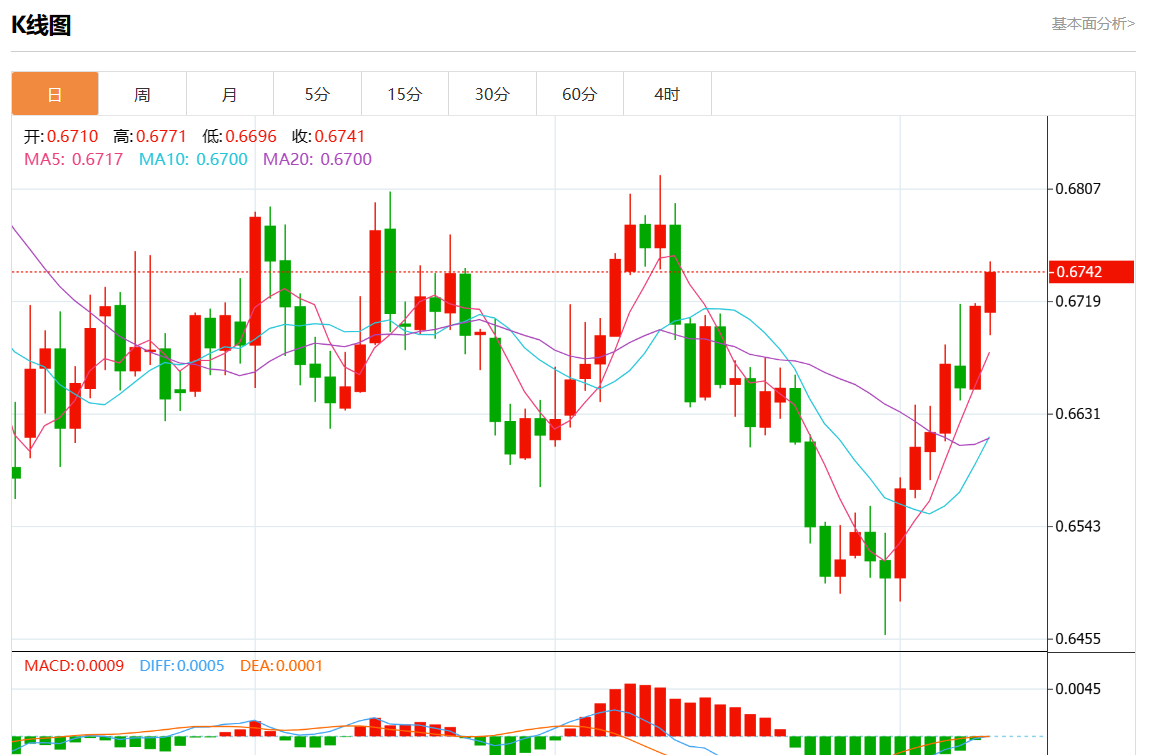今日分析:看涨,当 0.6710 为支撑位,目标定在0.6799。