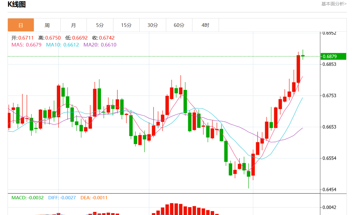 周五盘中,澳元/美元最新报0.6877,日图跌0.04%