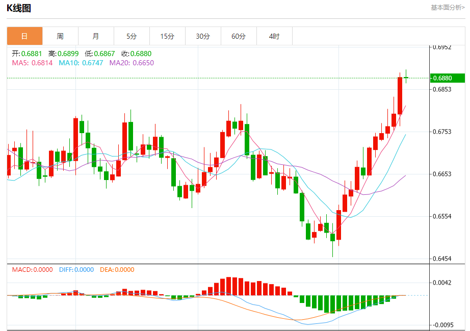 今天的预期交易区间在0.6830支撑和0.6940阻力之间