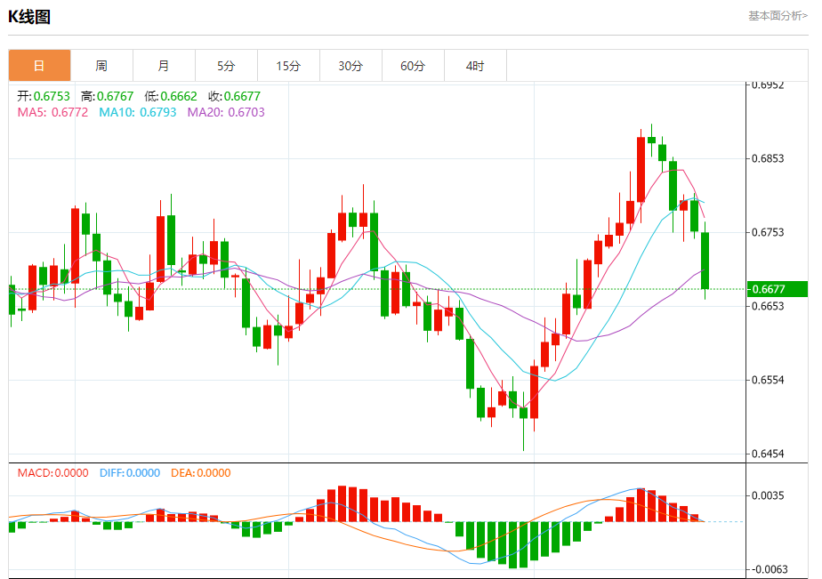今天的预期交易区间在0.6640支撑和0.6750阻力之间