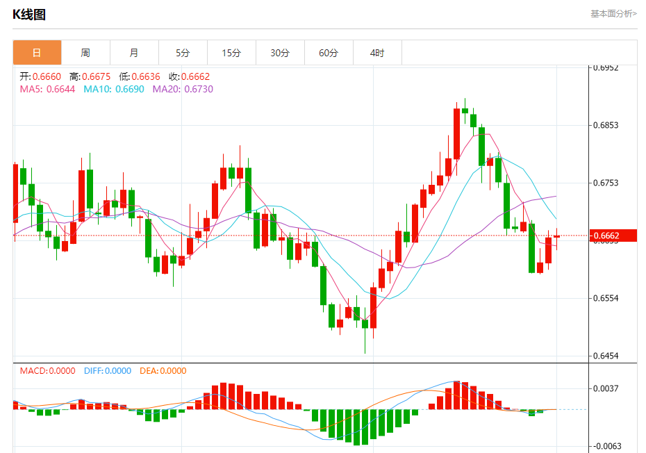 今天的预期交易区间在0.6570支撑和0.6670阻力之间