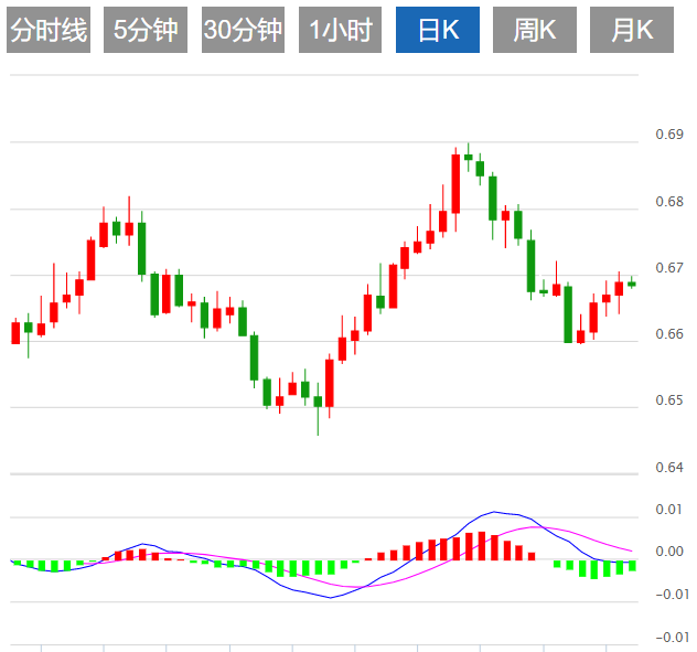 今日预期交易区间在0.6650支撑和0.6750阻力之间