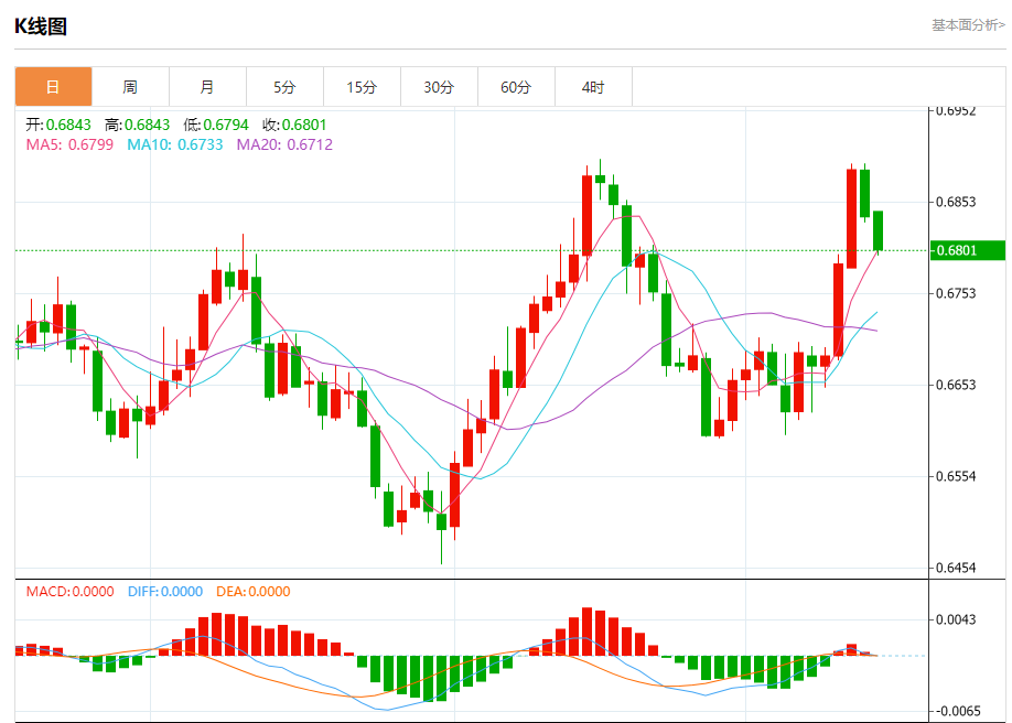 今天的预期交易区间在0.6760支撑和0.6880阻力之间